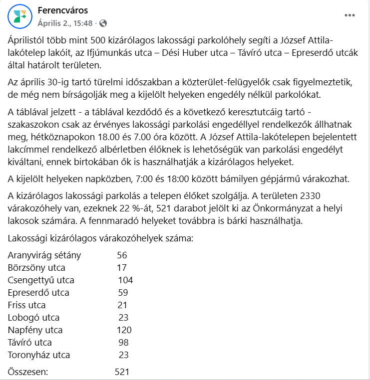 A legszebb az egészben, hogy olyan utcákban is fizetős engedélyhez kötötték az esti parkolást, ahol nappal nem kell fizetni a parkolásért.